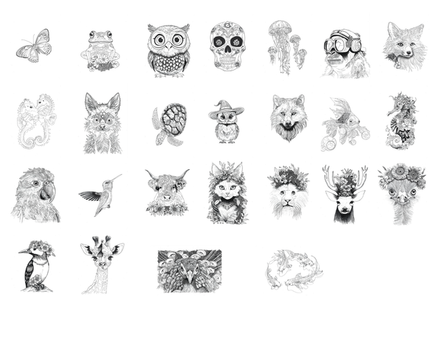 Plongez dans un univers de douceur et de créativité avec ce carnet de coloriage entièrement conçu à la main. Chaque page est une invitation à la détente, mettant en scène des animaux majestueux ornés de fleurs et de motifs inspirés de la nature.
