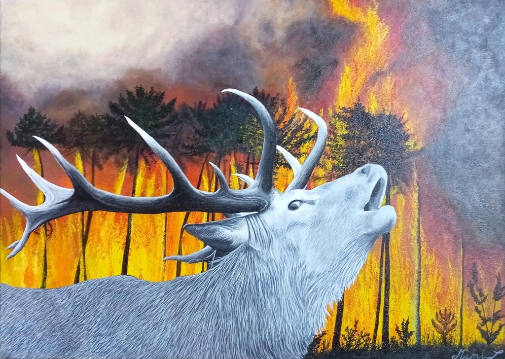 Une collection engagée et spectaculaire, où les couleurs vibrantes révèlent l’urgence de protéger notre planète. Chaque œuvre panoramique (120 x 40 cm) illustre les conséquences du réchauffement climatique : barrières de corail blanchies, fonte des glaciers, incendies de forêt, tempêtes de sable et perte d’habitat pour les animaux. Ces tableaux intenses invitent à réfléchir, à s’émouvoir et à agir pour notre environnement.